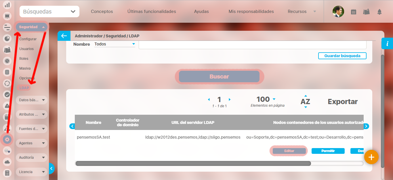 Para editar la información que ha sido configurada en el Dominio LDAP:
