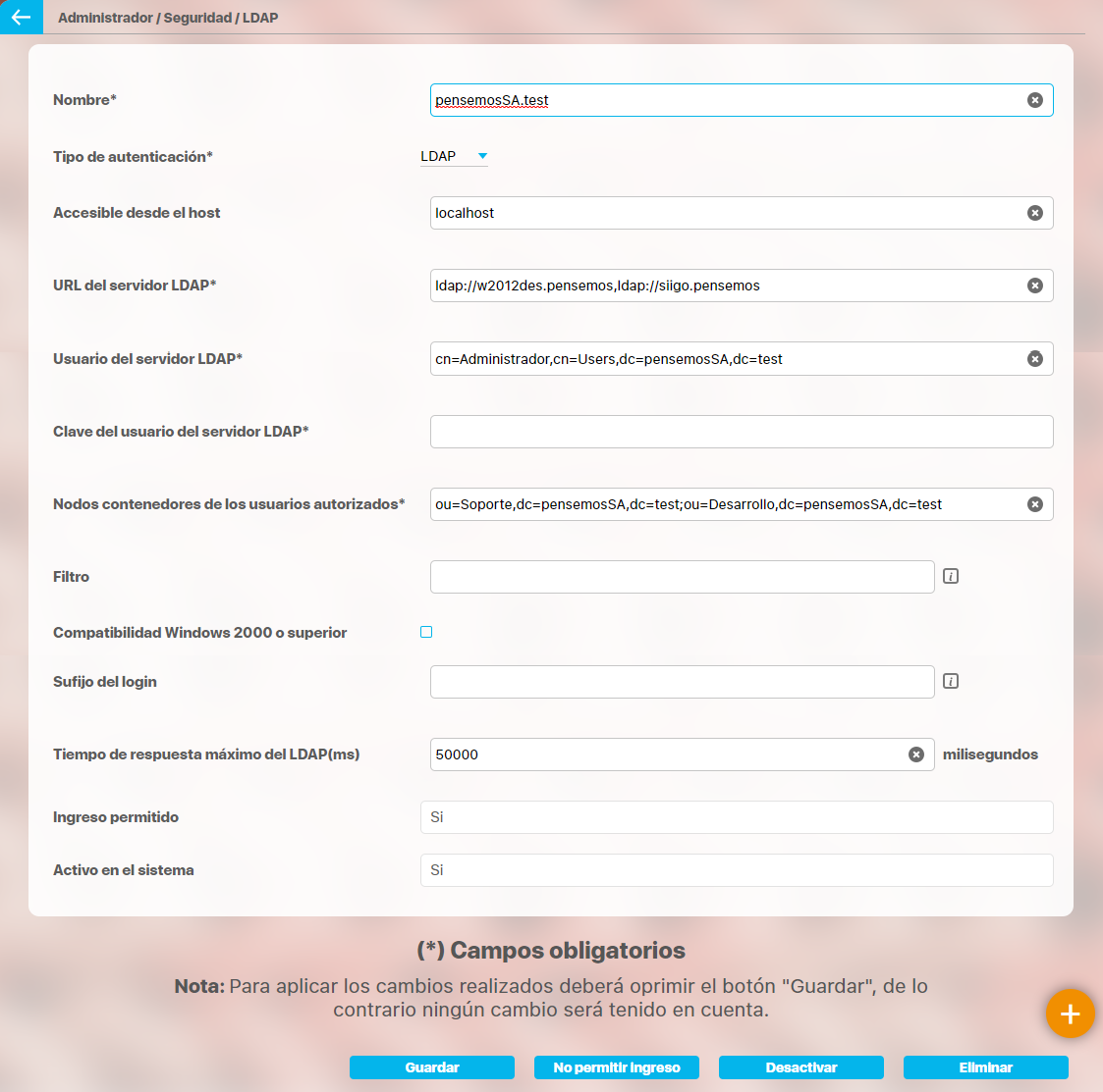 Encuentre el Dominio LDAP sobre el cual desea realizar dicha acción. Para ello tenga en cuenta las indicaciones dadas en el apartado Buscar Dominio LDAP.