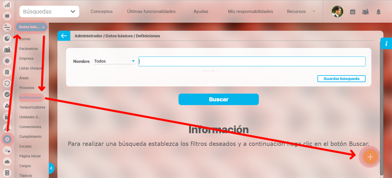 Haga clic en la opción "Definiciones" del menú lateral Información Básica.