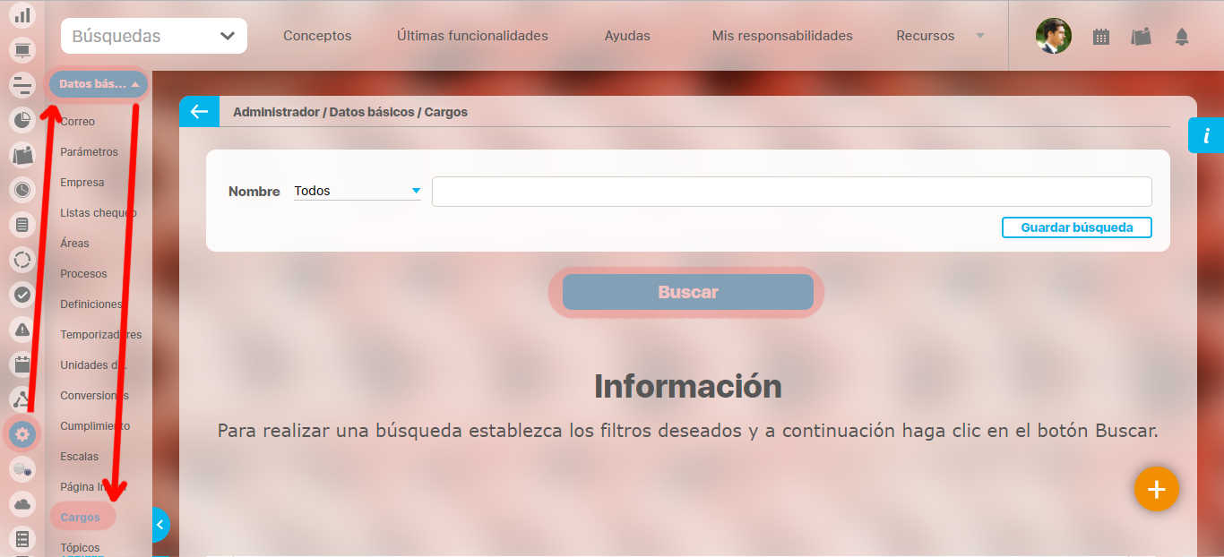 Haga clic en la opción "Cargos genéricos" del menú lateral Información básica, aparece la siguiente pantalla donde encuentra los diferentes criterios de búsqueda.