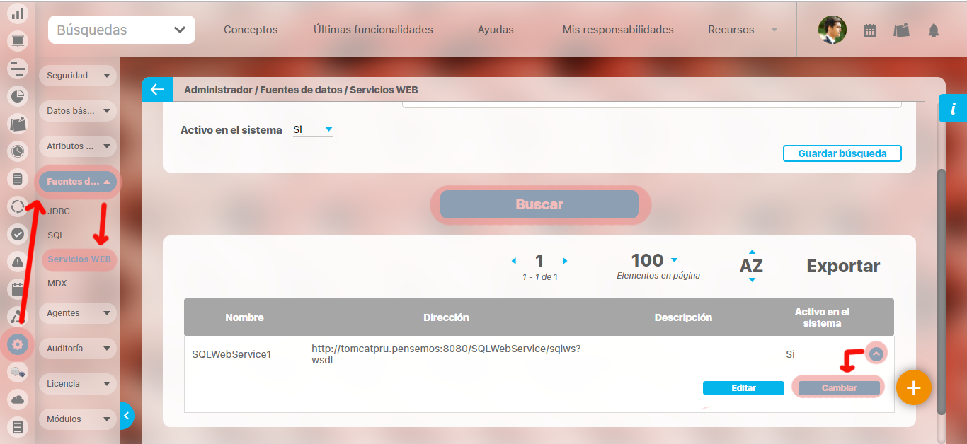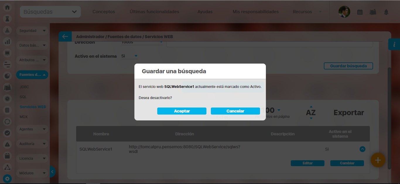 El usuario con acceso a la opción de webservices podrá activar o desactivar una operación según los criterios de la organización.