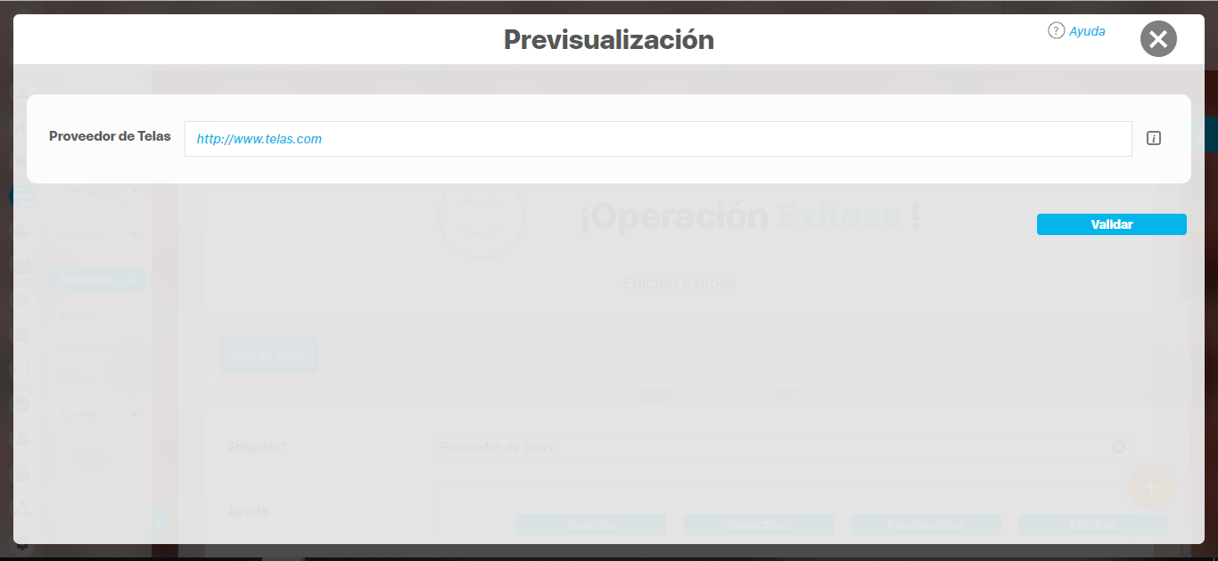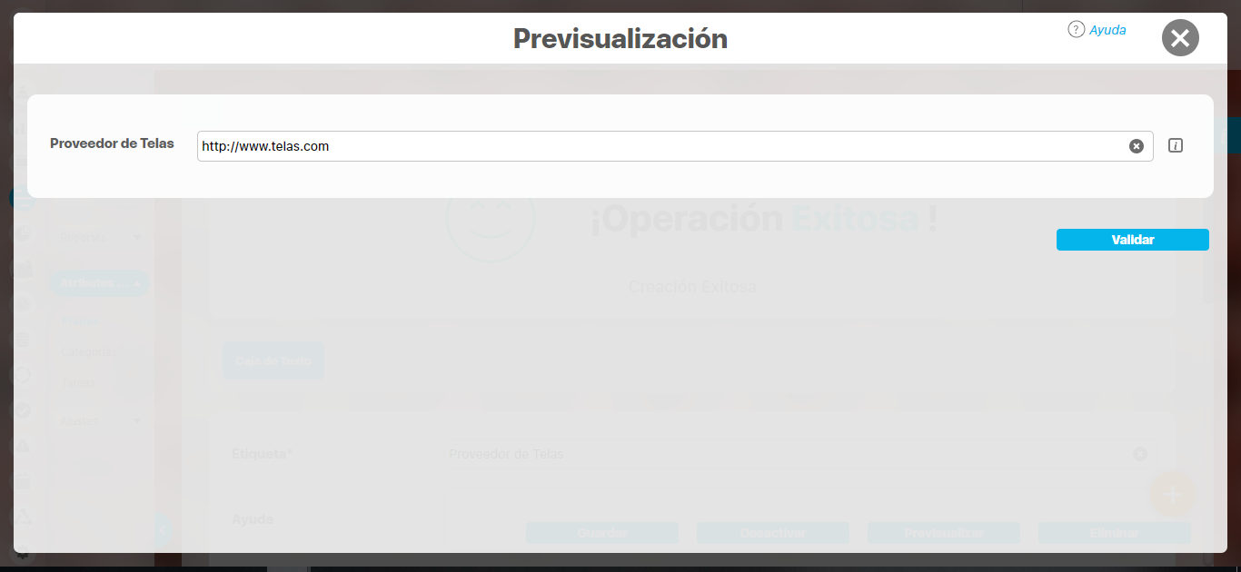 Para ello, ingrese un valor de prueba en los atributos y luego haga clic sobre el botón Validar.