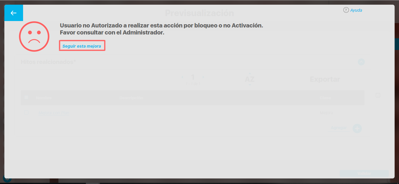 Cada concepto agregado a la tabla tiene un enlace en su nombre que llevará al usuario a explorar el concepto (si posee permisos) o la pantalla que le explica que no tiene permisos y le permite solicitar al responsable accesos sobre el concepto.