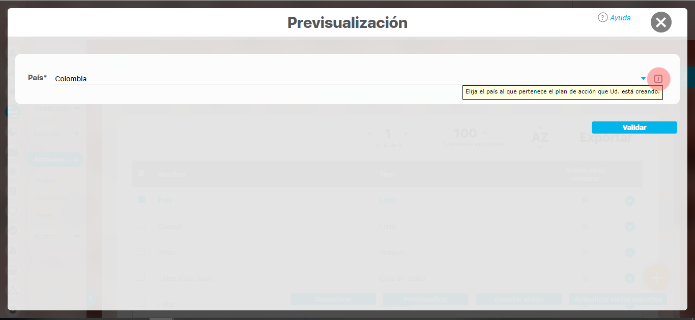 Durante la pantalla de pre-visualización de los atributos personalizados, puede validar el tipo de información que permite cada atributo personalizado.