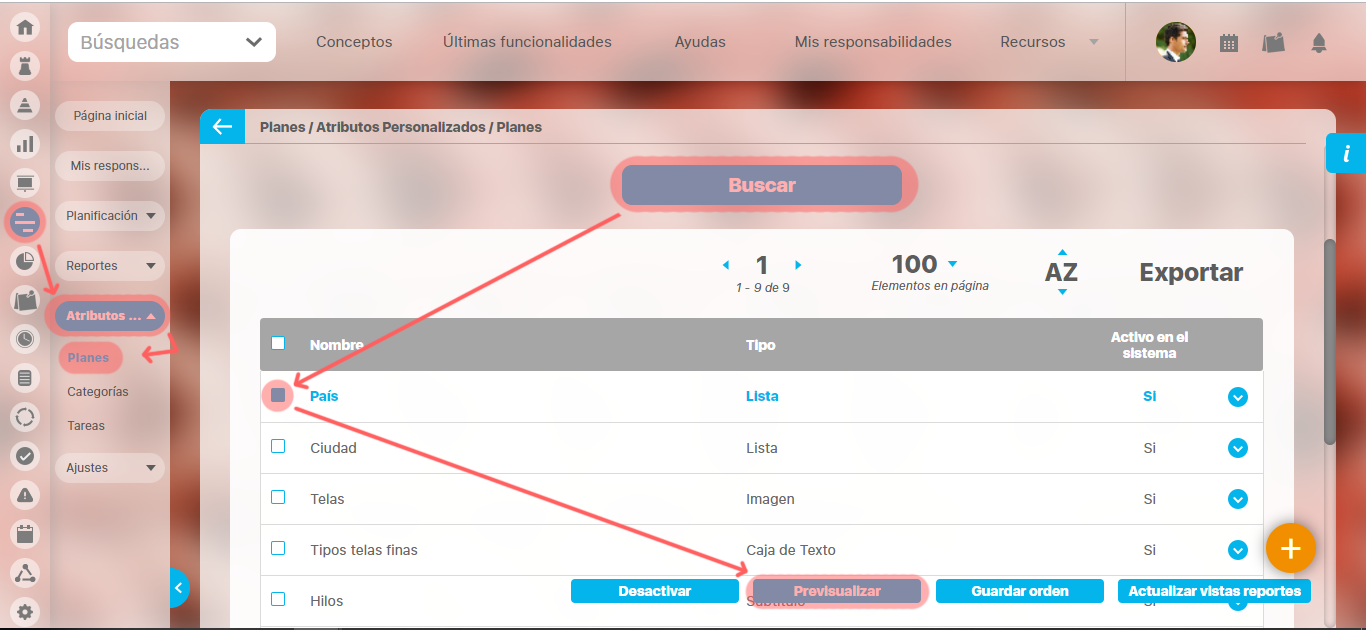 Una vez haya realizado la búsqueda de los atributos personalizados, podrá visualizarlos al seleccionarlos en la columna izquierda y elegir el botón Previsualizar.