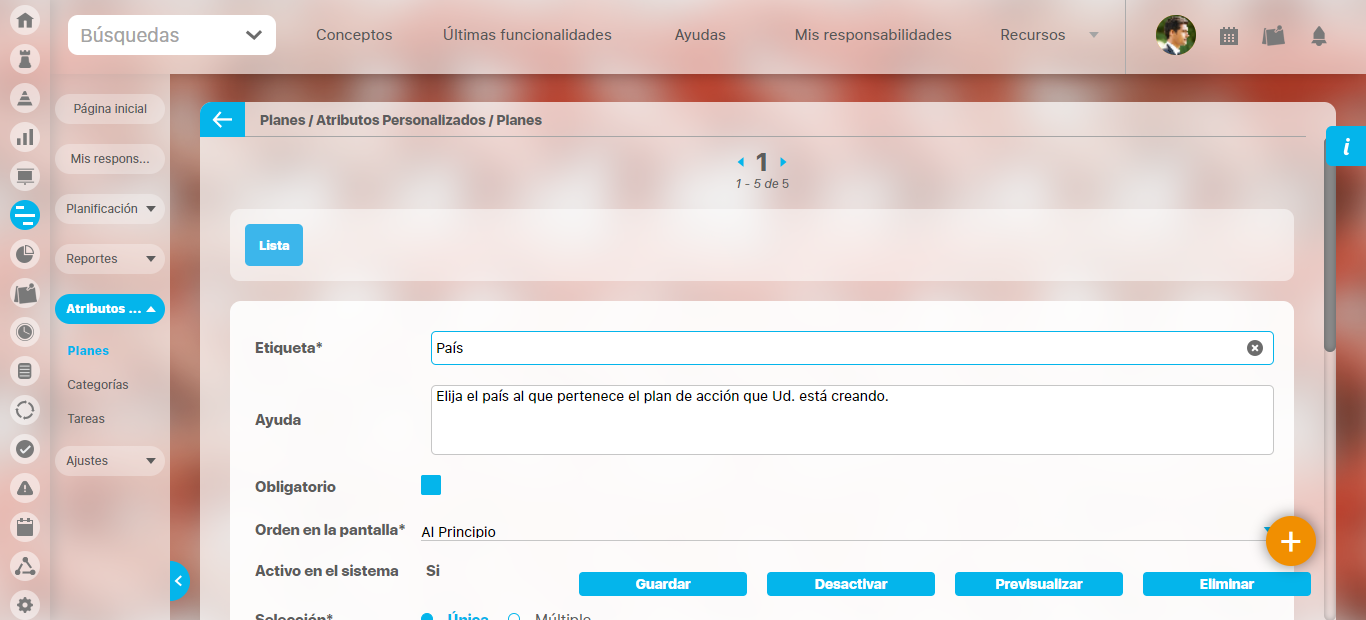 Se mostrarán los datos del atributo en forma editable para que realice las modificaciones necesarias y guarde los cambios.