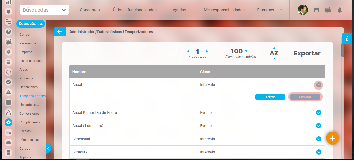 Una vez encuentra la frecuencia de medición haga clic sobre éste y seleccione la opción "Eliminar".