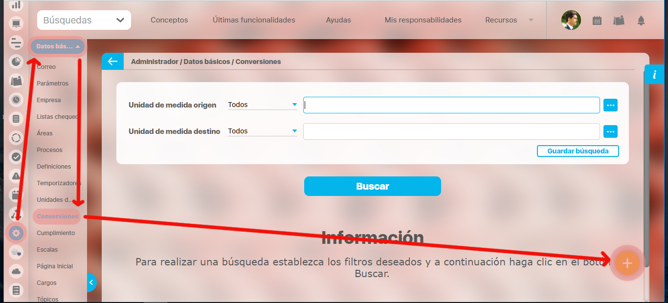 Las unidades que encuentra disponibles al seleccionar la unidad de destino y origen deben haber sido creadas anteriormente por la opción "Unidades de medida"