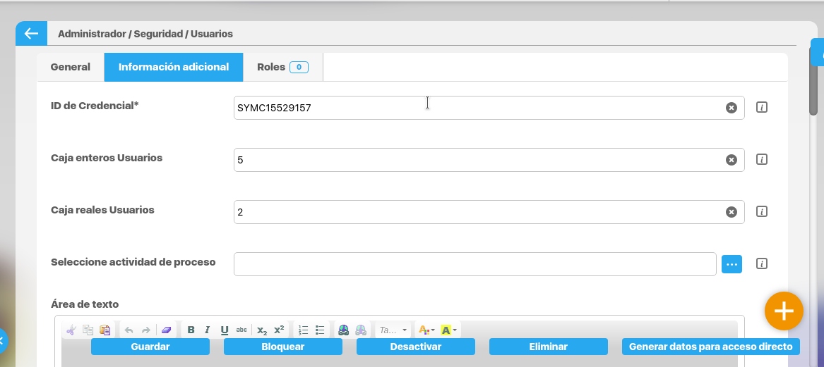 Crear un Atributo personalizado de tipo caja de texto que acepte números y letras, obligatorio, para el concepto Usuario, allí se debe registrar el ID de la credencial que genera cada instancia de VIP Access cuando se instala en el dispositivo móvil de cada usuario.