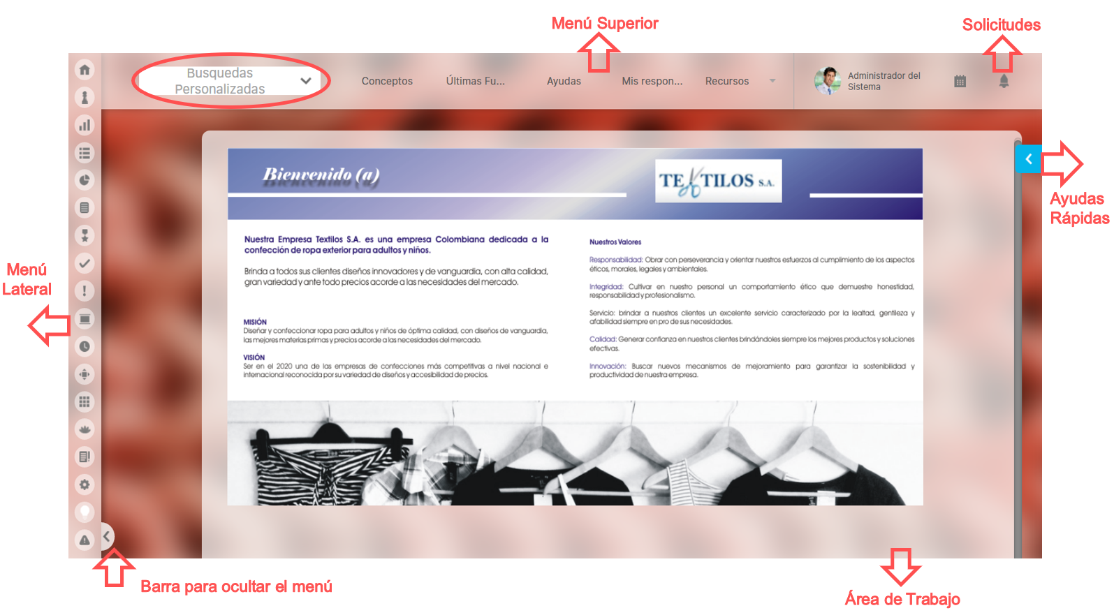 Menú Lateral: Área que contiene las diferentes opciones a las que puedo acceder en el módulo