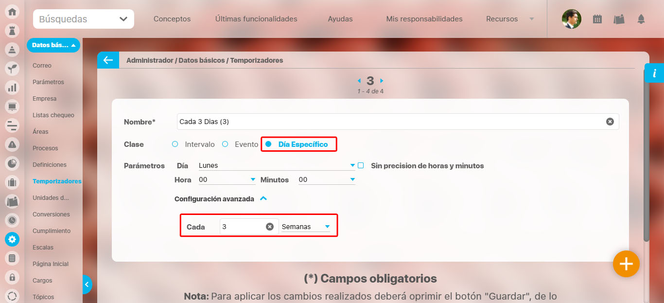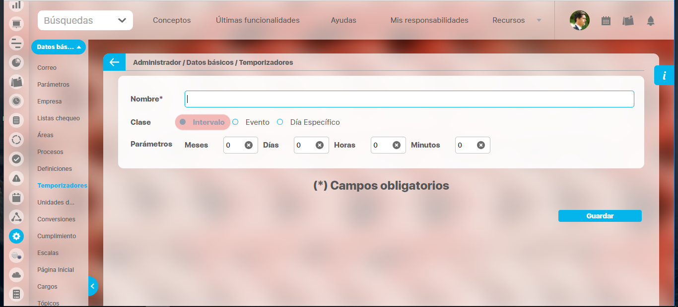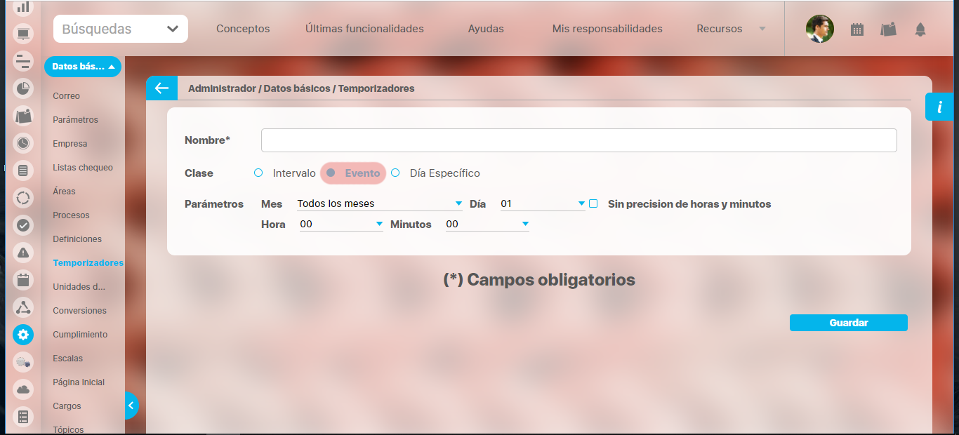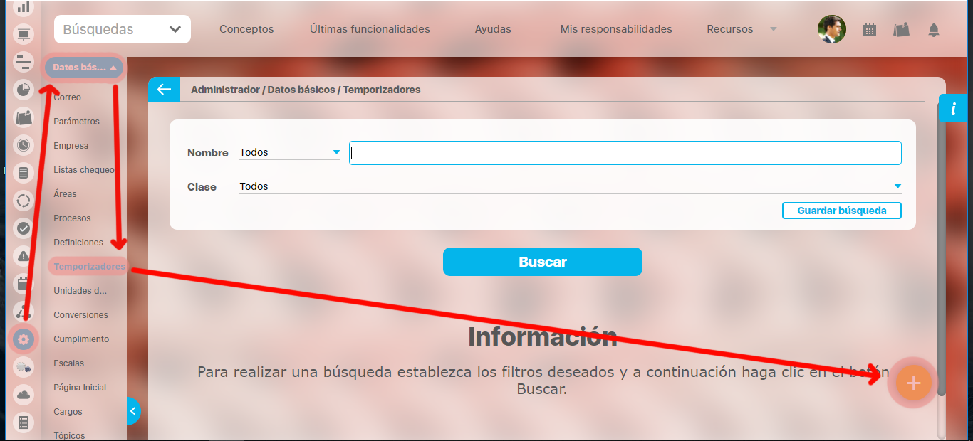 Haga clic en la opción "Temporizadores" del menú lateral Datos Básicos,