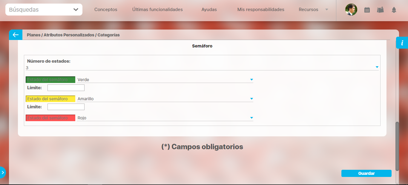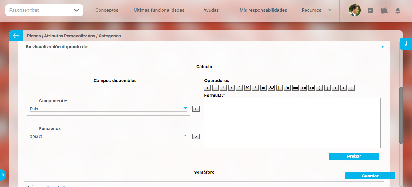 Semáforo: En esta sección puede configurar el semáforo que desea que acompañe al resultado del cálculo.