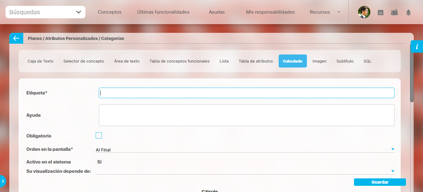 En esta sección debe configurar la fórmula del valor que será calculado para este atributo.