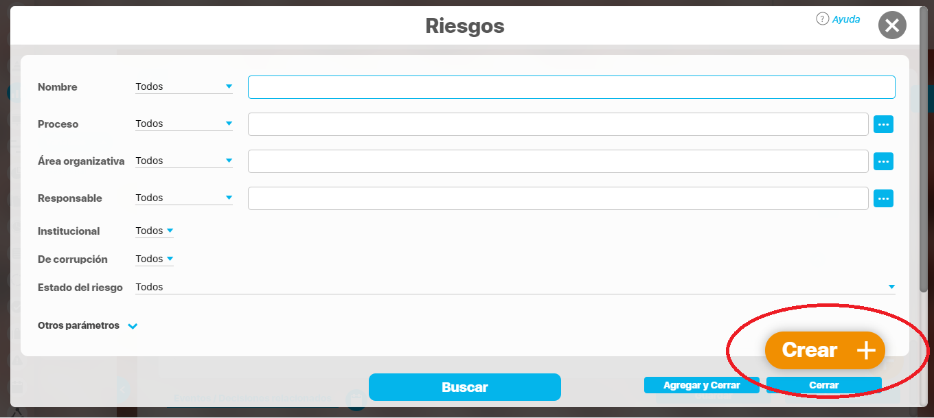 Si das clic en crear, entonces aparece la pantalla para crear un riesgo Nuevo,
