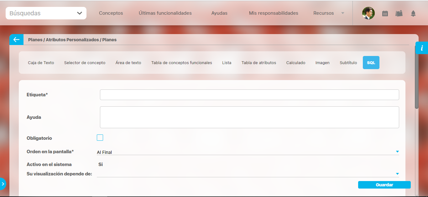 Activo en el sistema: Este campo es sólo informativo. Indica si el atributo personalizado puede ser usado en las pantallas de edición y exploración del concepto. Al crear un atributo, su valor predeterminado es Sí.