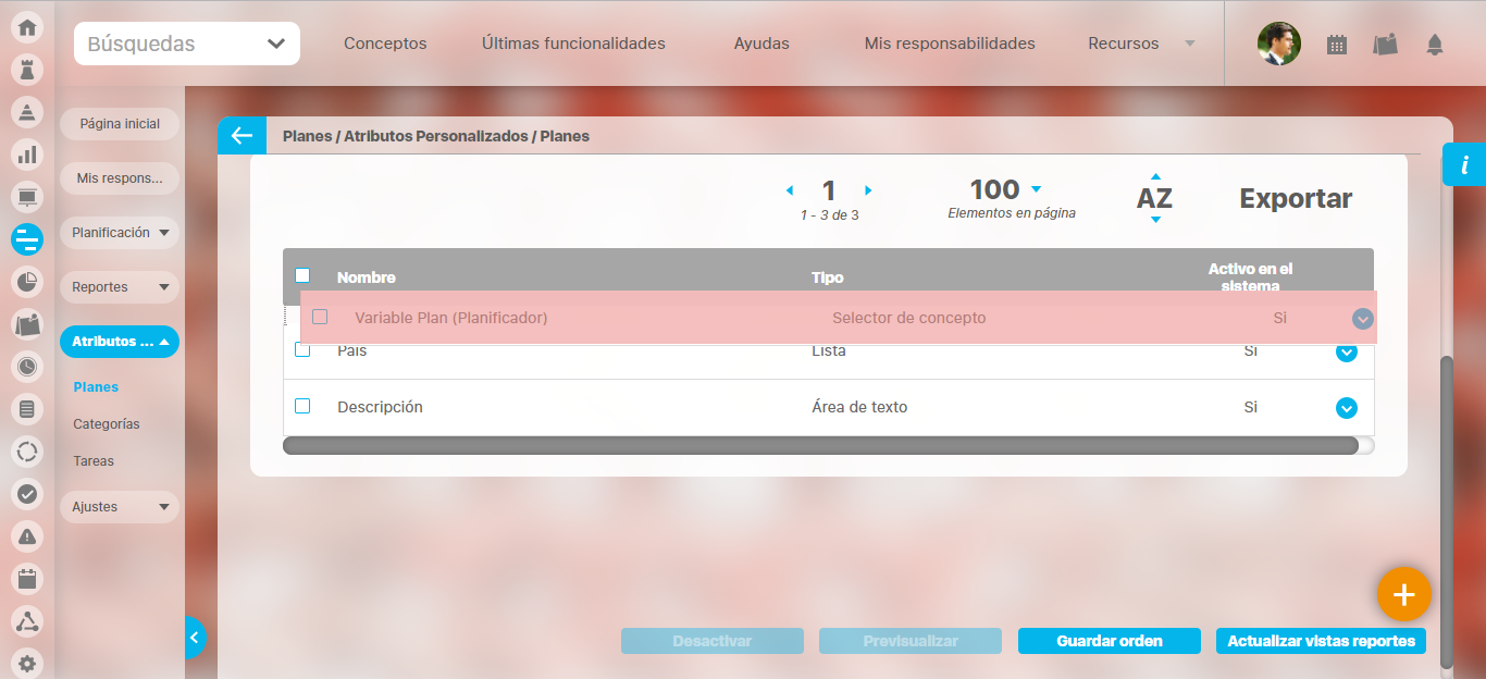 Si desea cambiar el orden de los atributos personalizados que aplican para el concepto, se recomienda realizar una búsqueda que incluya todos los atributos personalizados para ese concepto.