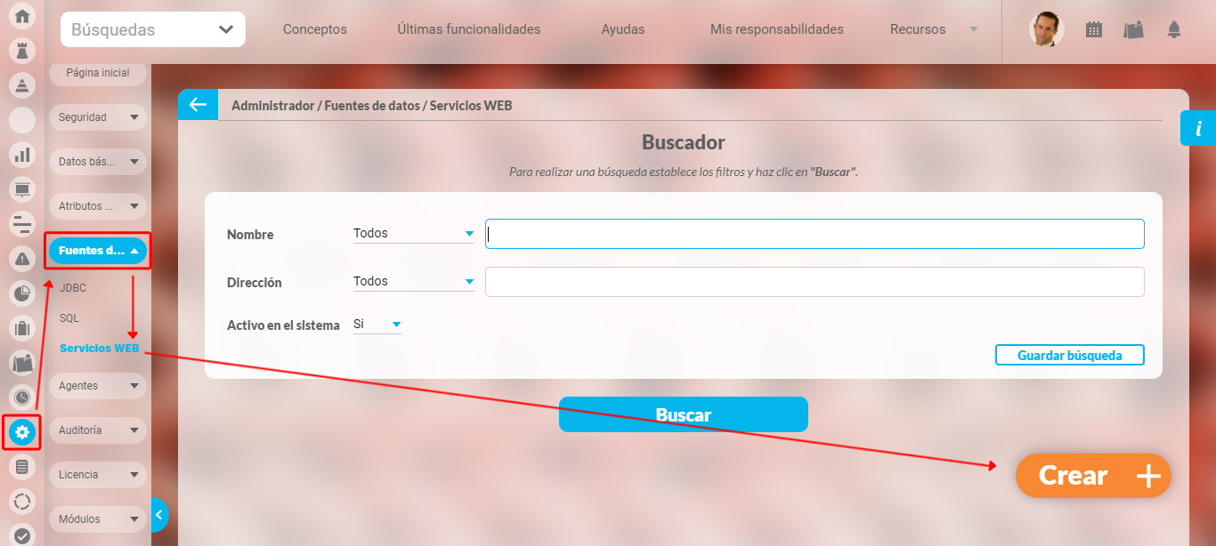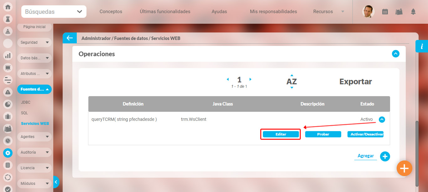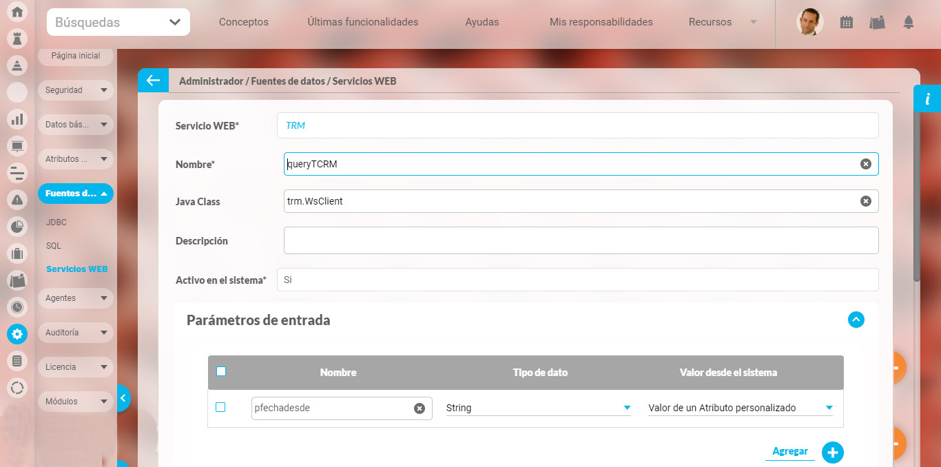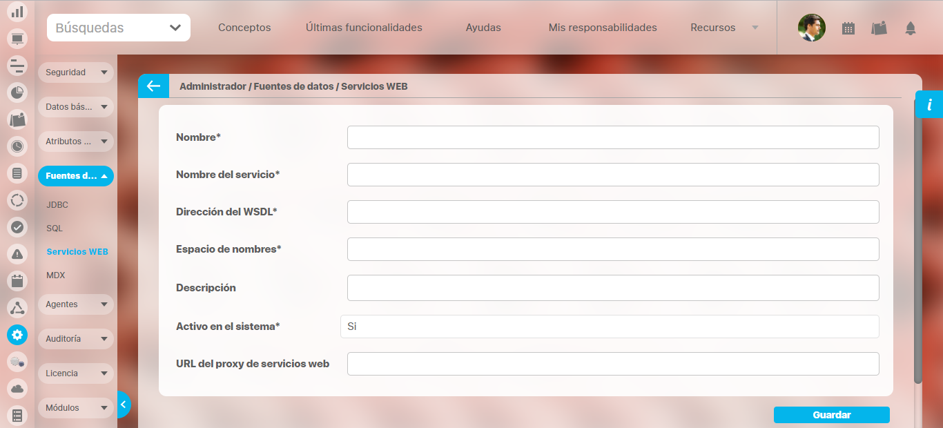 Activo en el sistema: Campo que indica el estado del servicio web, activo/inactivo (por defecto un servicio web después de crearse se encuentra activo).