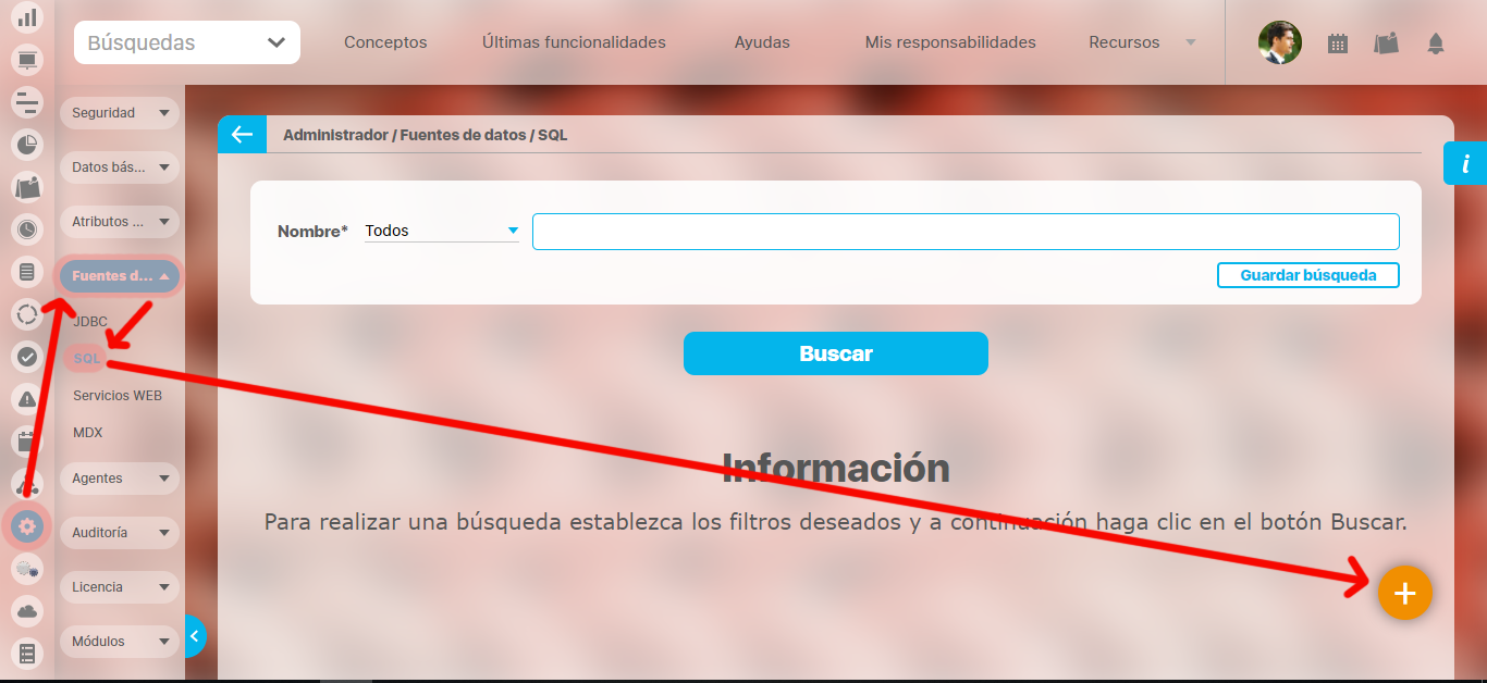 Una vez se validan los parámetros de usuario empleados en la consulta SQL, aparece el botón Guardar.