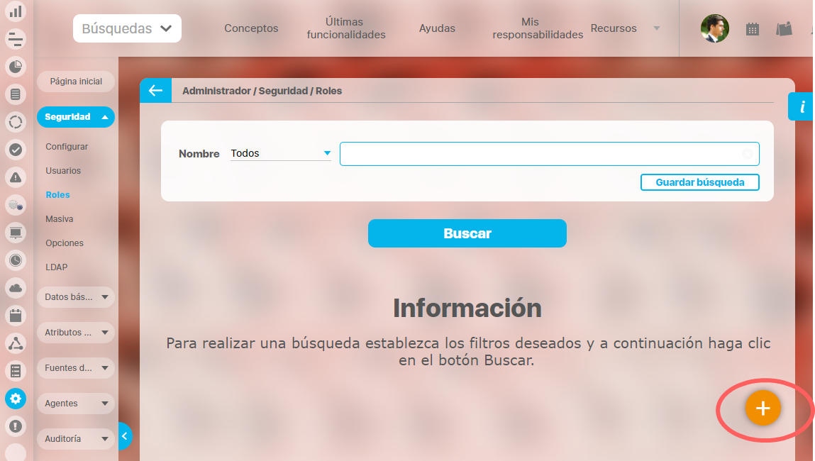 Para crear un rol has clic en la opción "Roles" de la sección Seguridad del menú lateral, del módulo administrador.