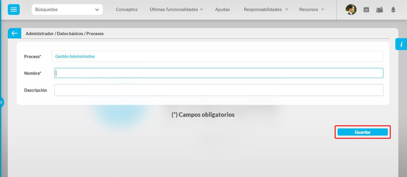 Este ícono le permite consultar la documentación que se haya asociada al dicho proceso.Haga clic en el botón Guardar para aplicar los cambios realizados.