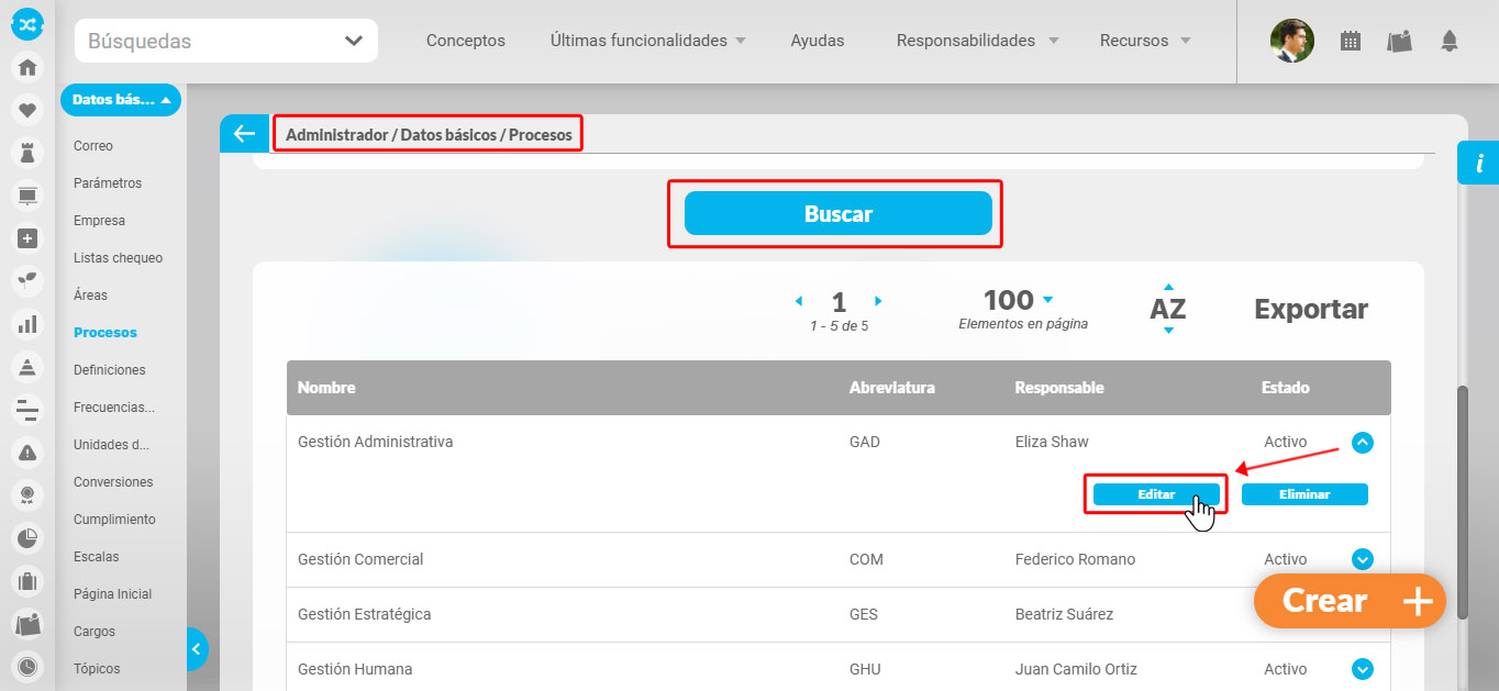 Una vez encuentra el proceso haga clic sobre éste y seleccione la opción "Editar".