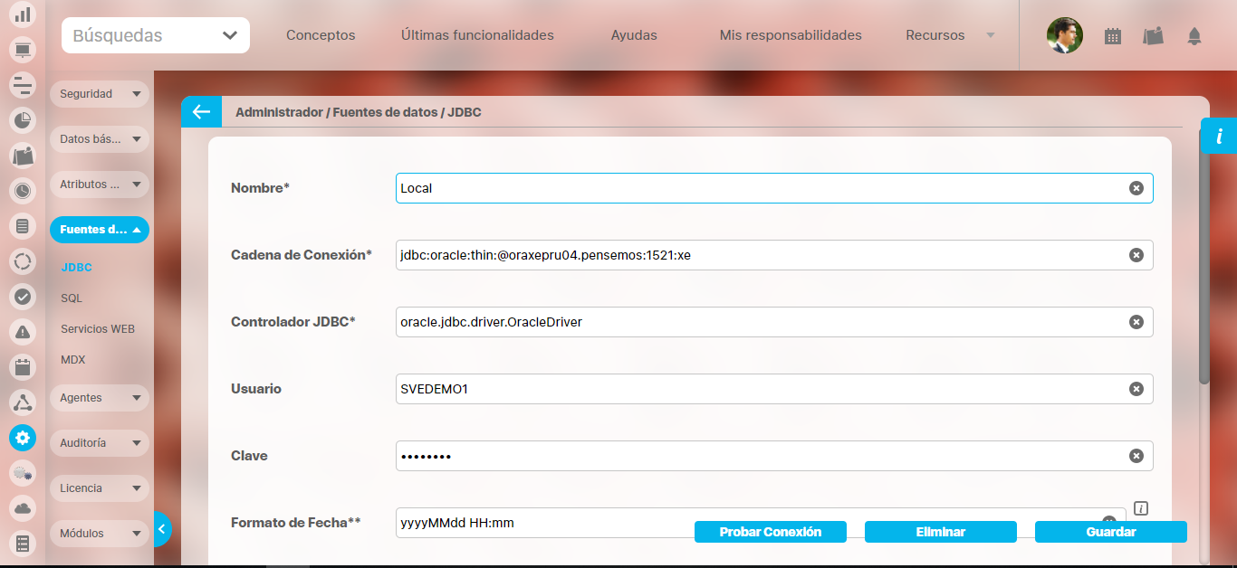 Aparece la pantalla de edición de la fuente con sus datos básicos, desde donde el usuario puede modificar los mismos.