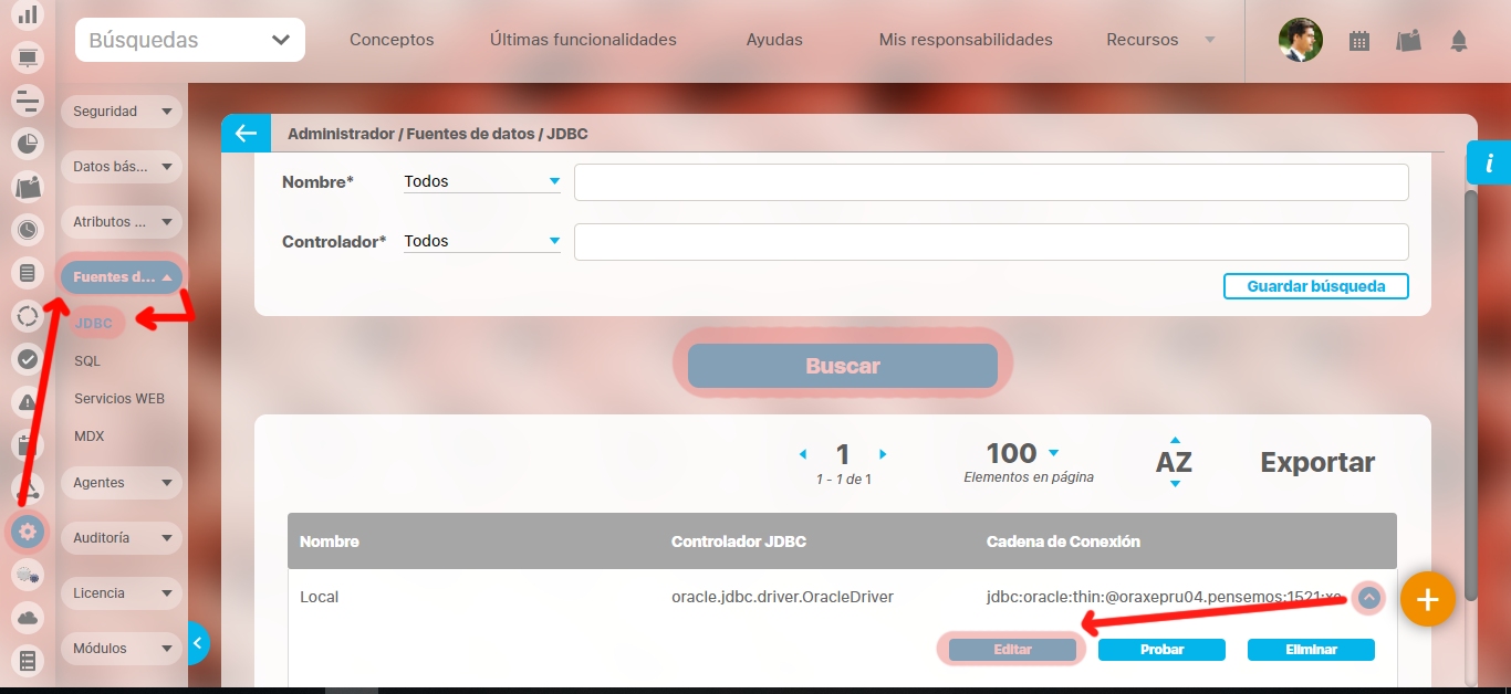 Encuentre la fuente sobre el cual desea realizar dicha acción. Para ello tenga en cuenta los parámetros de búsqueda expuestos en el ítem "Buscar Fuente"