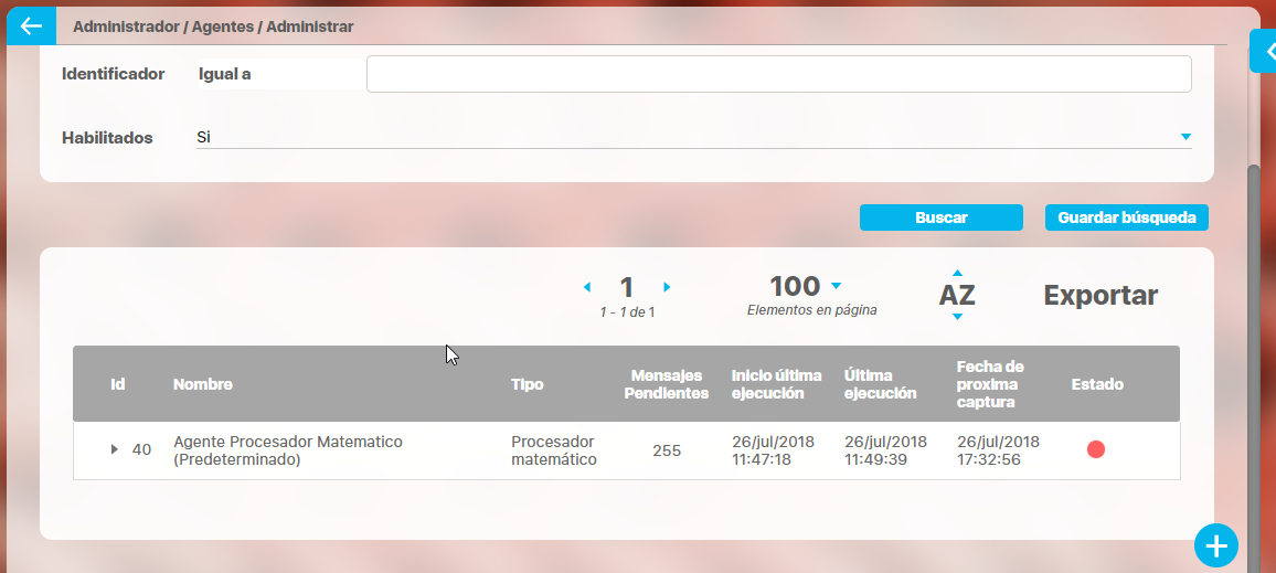 Además observa que el botón iniciar no aparece, pues solo se puede ejecutar cada agente una vez al tiempo, solo hasta que termine la ejecución volverás a disponer del botón iniciar.