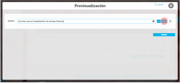 Para los atributos de tipo Selector de concepto en la previsualización y en las opciones donde se usen se dispone del botón VER, que permitirá explorar el concepto asignado, siempre y cuando el usuario cuente con los permisos necesarios.
